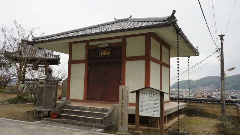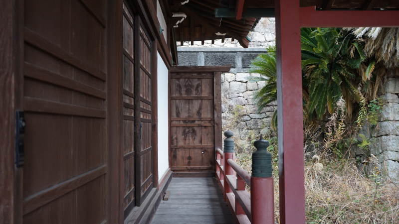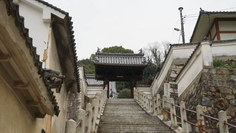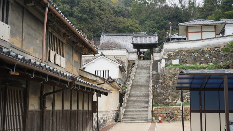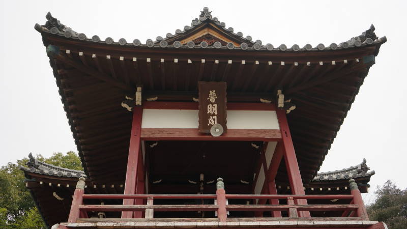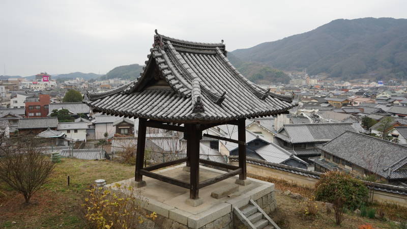 西方寺の境内にある京都の清水寺を模した舞台造りの建物で木造十一面観音立像(広島県重要文化財)を祀っています。 舞台からは竹原の町を一望でき、眺望の優れた場所であるため竹原の古い町並み散策でも外せないスポットです。 普明閣のある西方寺は城郭のような白い壁と石垣があり独特の景観をもっています。