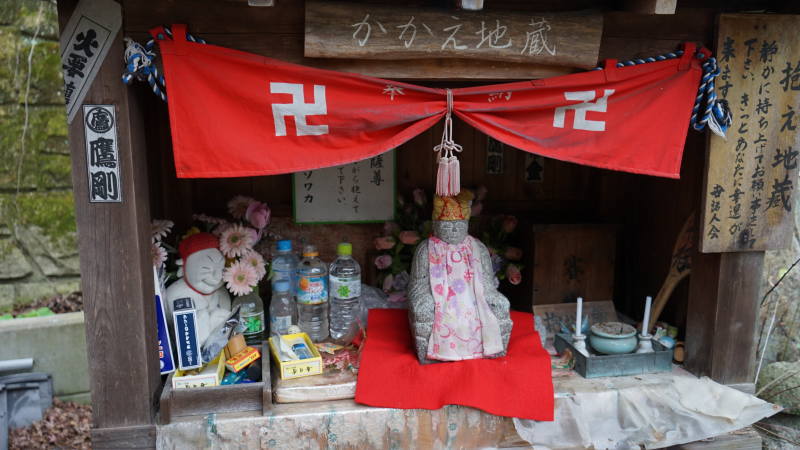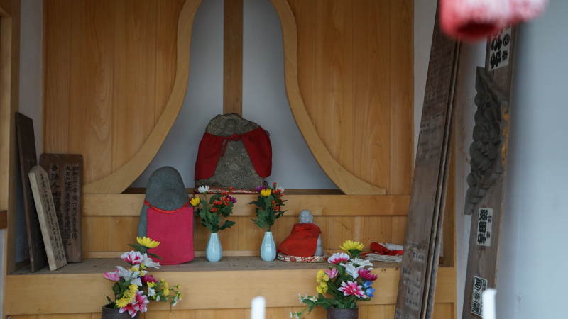 お堂のお地蔵さんを静かに持ち上げて願いことをすると幸せになると言われています。