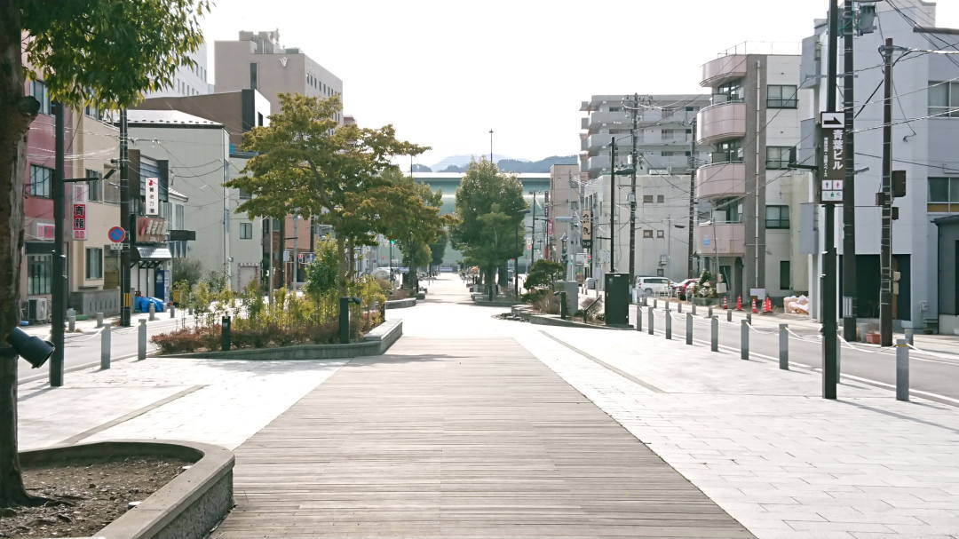 釜石の市街を南北に貫く約300mの道路で花壇や街路樹、オブジェに彩られた通りです。 通りの中央の歩道は公園のようになっており、散策が楽しめます。