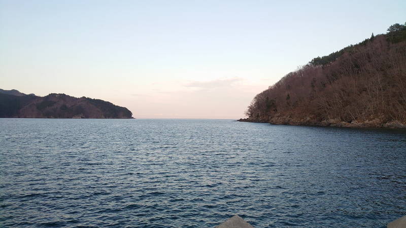 冬の唐丹湾の風景