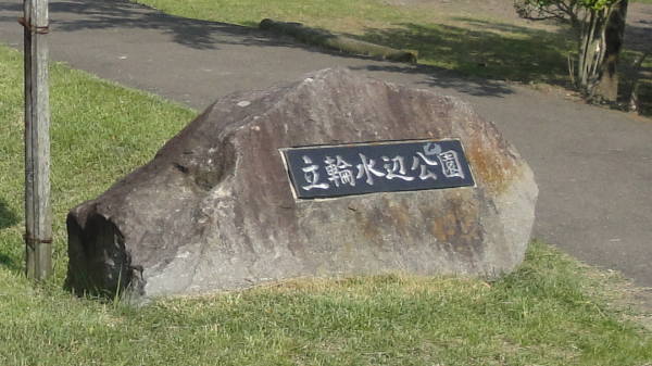 立輪水辺公園と彫られた公園入口の石