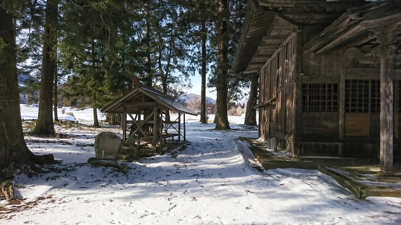 熊野神社は三国街道須川宿の外れに鎮座しています。 創建は平安時代後期の天喜3年(1055)、前九年合戦の折、源頼義がこの地にて戦勝祈願の為に建立したのが始まりといわれています。 明治時代初頭に発令された神仏分離令を経て村社に列せられました。 社殿には見事な彫刻が施されており、たくみの里散策の見所の一つになっています。