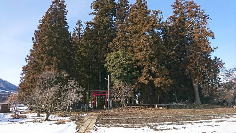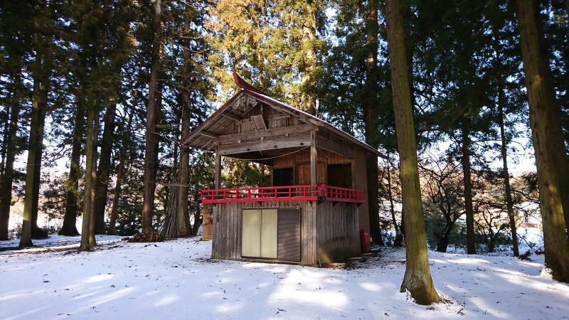 杉の木々の中に建つ須川熊野神社