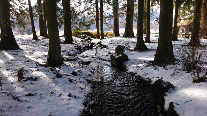 境内を流れる小川は本当に冷たそうです。