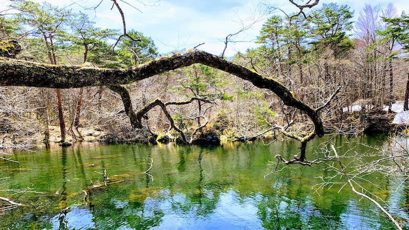 車:裏磐梯ビジターセンター、または五色沼入口観光プラザ(裏磐梯観光協会)の駐車場利用。毘沙門沼まで歩いて5分程度。大型バス可。